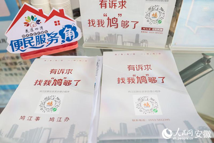在四湾社区便民服务角,“一呼‘鸠’应”平台随处可见。人民网记者张俊摄